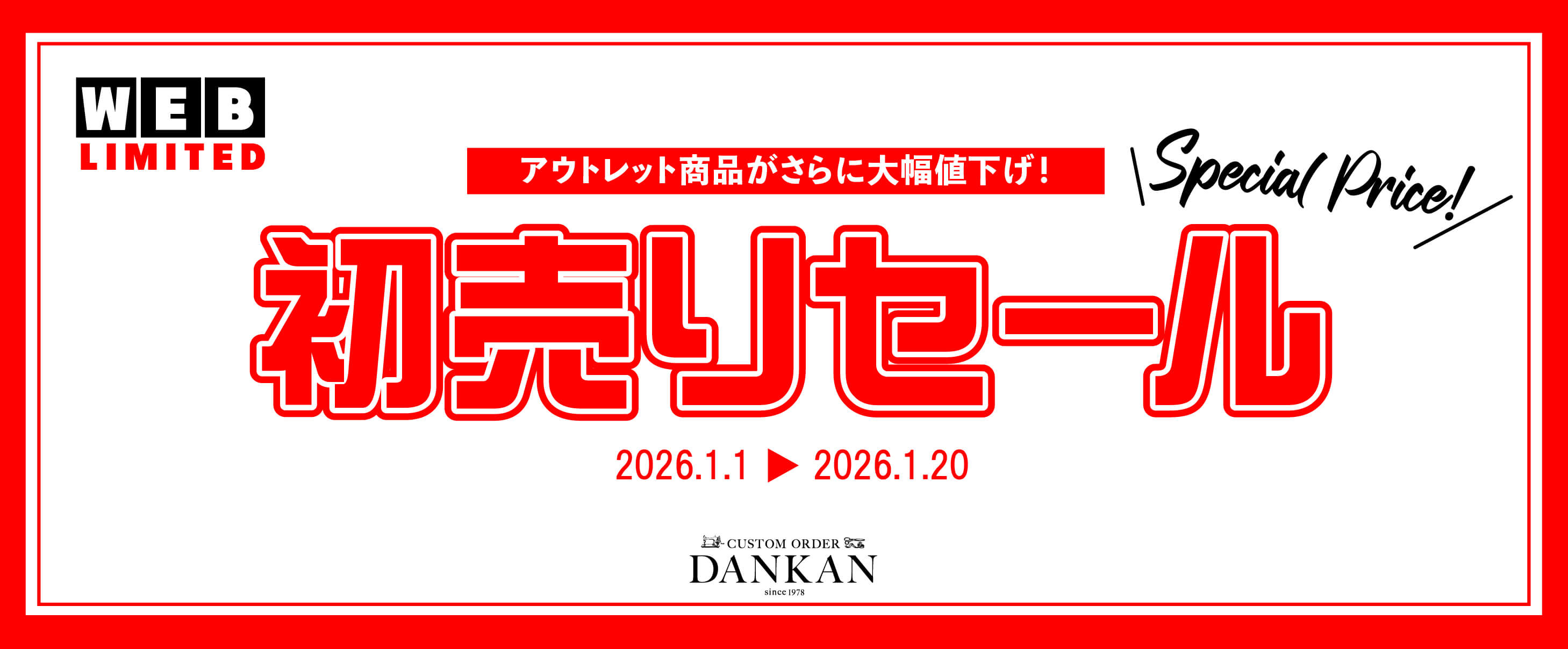 2026/01/01 | 【セール】初売りセール開催!アウトレット商品がさらに大幅プライスダウンしてお買い得に!